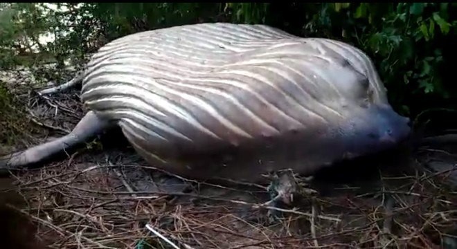 De acordo com a equipe da ONG Bicho D’Água, que esteve no local, o animal não era adulto e a carcaça foi encontrada a cerca de 15 metros de distância da praia, algo não tão raro de acontecer. Se observarmos o mapa do local, é possível observar que a praia é cercada por água em três lados e, devido às cheias, a maré se encarregou de levar a baleia para a floresta.