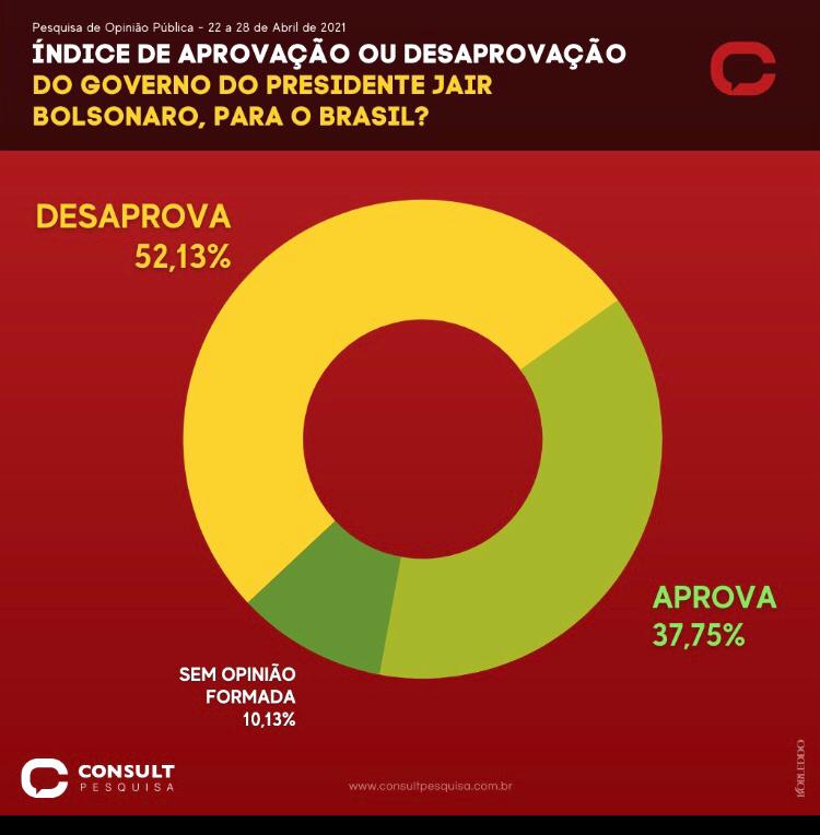No quesito sobre o governo federal, 52,13% disseram desaprovar a gestão do presidente Jair Bolsonaro. Outros 37,75% disseram aprovar. Um total de 10,13% disse não ter opinião formada sobre o assunto.
