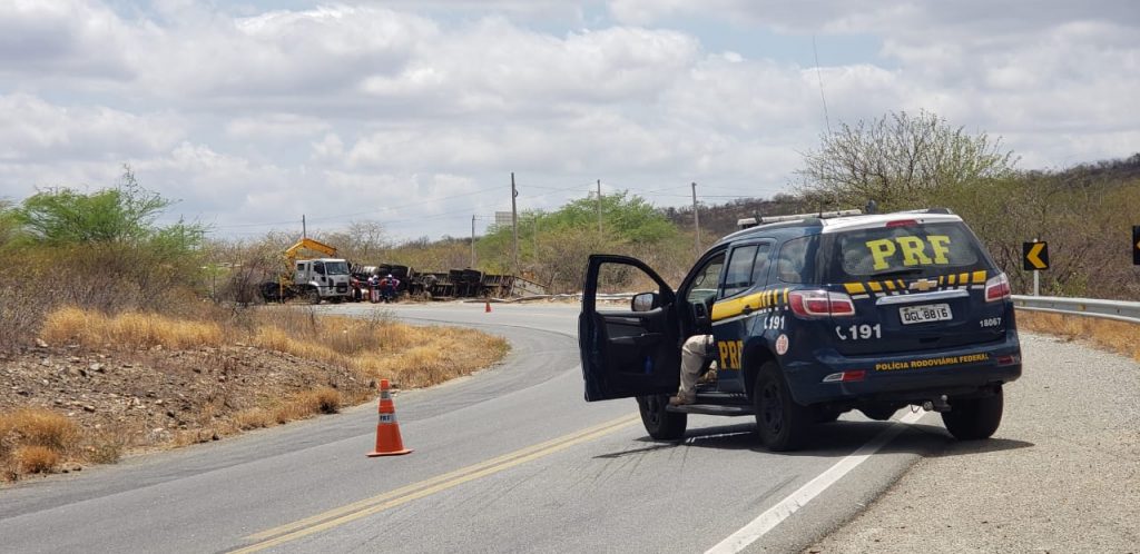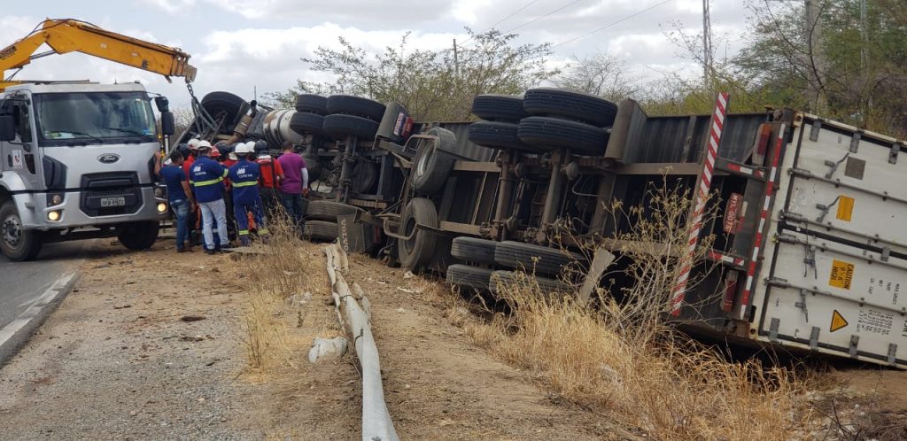 Por volta de 6h30, da manhã desse domingo (12), uma carreta tombou em uma curva próxima ao Km 8 da RN 427, no sentido de Acari para Currais novos, próximo à Mina Brejuí.
