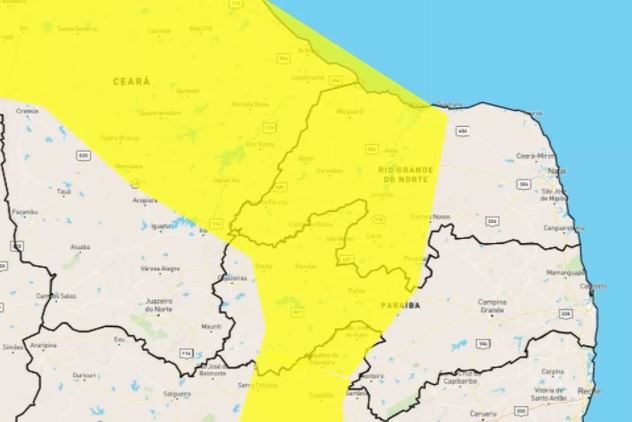 O Instituto Nacional de Meteorologia (Inmet) emitiu um alerta de chuvas com perigo potencial para 91 cidades do RN. O aviso vale desta quinta (6) até 11h da sexta-feira (7). São previstas chuvas entre 20 e 30 milímetros por hora ou até 50 mm por dia, além de ventos intensos – de 40 a 60 km/h.