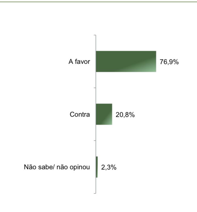 76,9% se mostraram a favor e 20,8% são contra. Já 2,3% não sabe, ou não opinou.