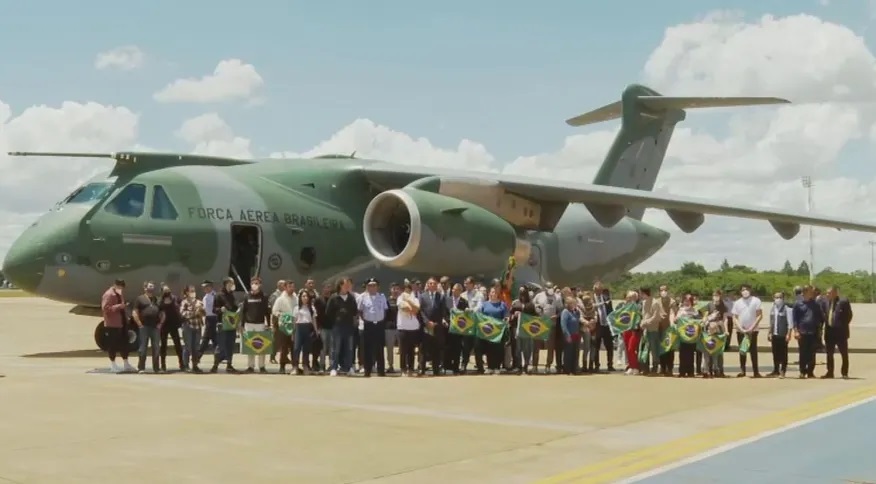 As aeronaves KC-390 e VC-99 acabam de pousar na Base Aérea de Brasília, trazendo os brasileiros que deixaram a Ucrânia.#AsasqueProtegemOPaís @govbr @DefesaGovBr @ItamaratyGovBr pic.twitter.com/TMsB2hzv8B