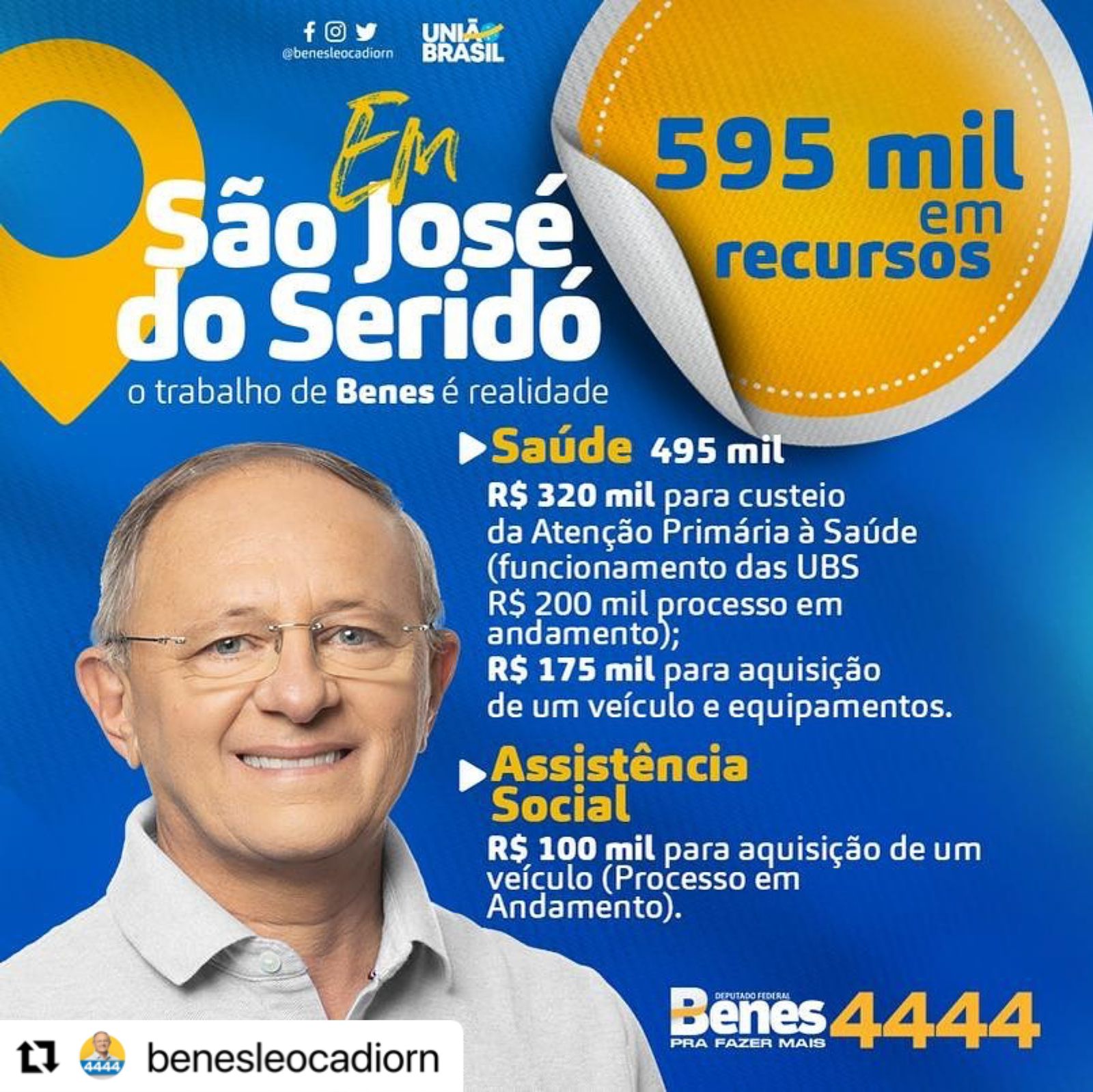 O deputado federal Benes Leocádio tem sido a janela de acesso dos faccionistas ao Governo Federal, seja por meio do Ministério do Desenvolvimento Regional, pasta antes comandada por Rogério Marinho, ou por meio de emendas parlamentares, ampliando a rede de emprego em São José do Seridó.