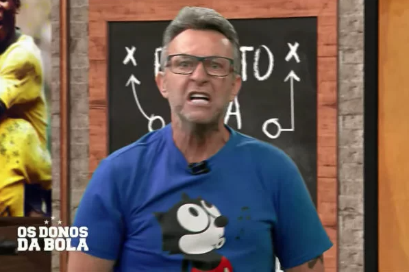 No programa Os Donos da Bola desta sexta-feira (9/12), o apresentador surtou após ver Marquinhos chutar na trave a cobrança que tirou a Seleção do torneio.