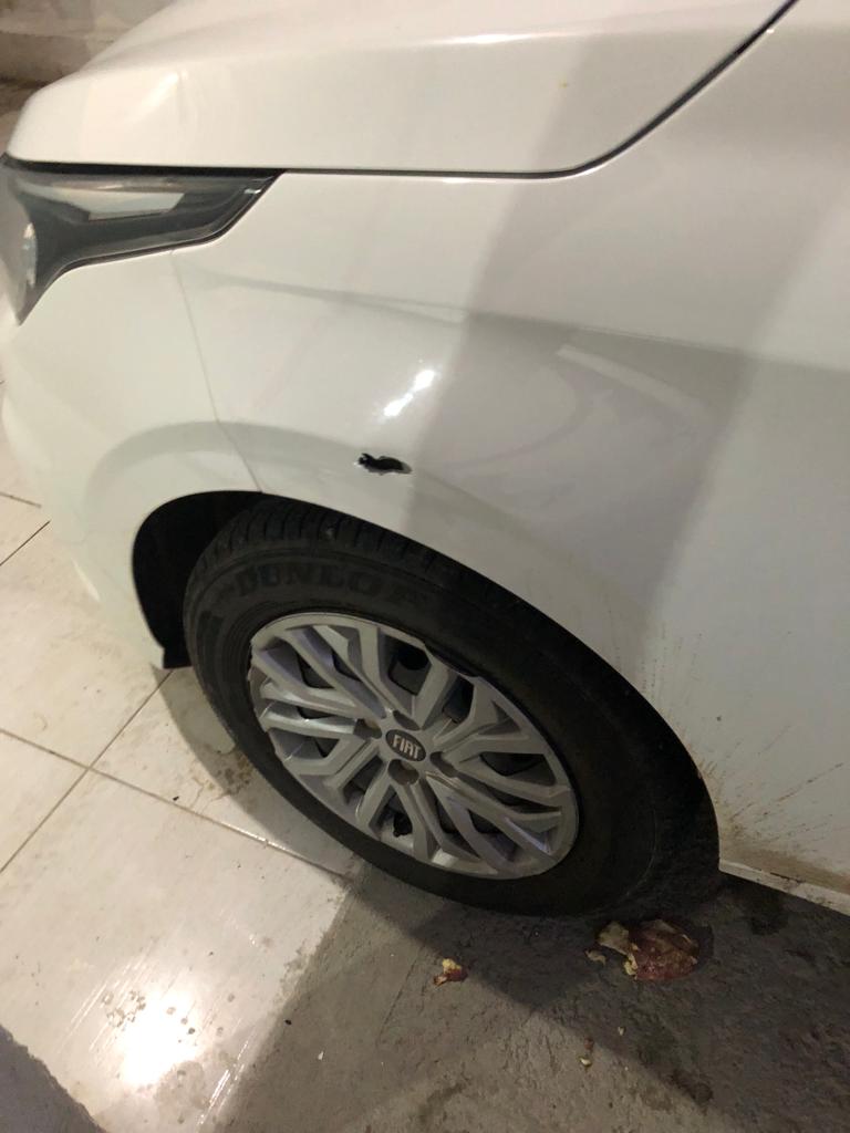 As marcas ficaram nas paredes e no veículo do vereador, que é irmão do prefeito da cidade, Babá Pereira, ex-presidente da Femurn.