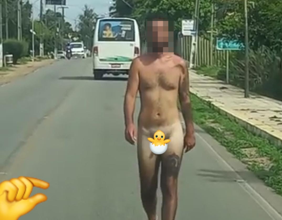 Segundo o que foi apurado, o homem flagrado andando pelado na rua não foi preso. Após para o trânsito, indo de encontro a alguns carros, ele saiu correndo e não foi identificado.