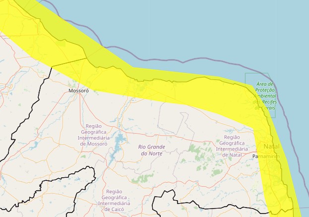 O Instituto Nacional de Meteorologia (INMET) emitiu um alerta amarelo de Perigo Potencial de Ventos Costeiros para 45 cidades litorâneas do Rio Grande do Norte (RN). O alerta é válido até às 14h do dia 22 de julho de 2023.