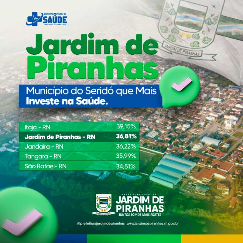 Jardim de Piranhas tem o maior investimento em saúde entre as cidades do Seridó e o segundo maior desempenho entre todos os municípios do estado.