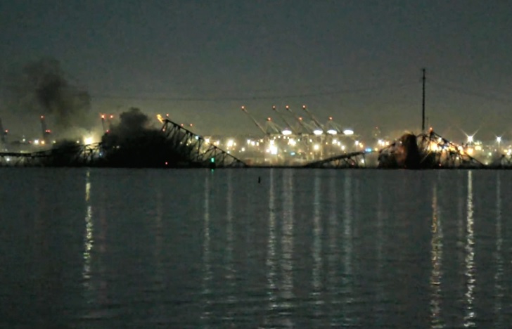 O vídeo que flagrou a colisão mostra um navio de carga indo em direção a uma das colunas de suporte da ponte. Em seguida, a embarcação colide com a estrutura e provoca o desabamento de grande trecho da ponte em poucos segundos. O impacto provocou imediatamente o colapso de partes adjacentes da ponte. Veja imagens: