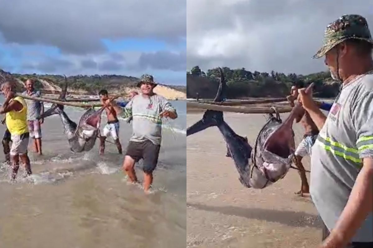 Um fato inusitado chamou atenção em Baía Formosa, no Litoral Sul do Rio Grande do Norte, na manhã desta quarta-feira (11). Um peixe do tipo Marlin, popularmente conhecido como agulhão, foi capturado por cinco pescadores locais. O tamanho impressionante do animal gerou curiosidade entre os moradores, que registraram em vídeos o esforço para retirar o peixe do mar. Segundo o o Presidente da Colônia de Pescadores de Baía Formosa, o peso do Marlin é de 166 quilos.