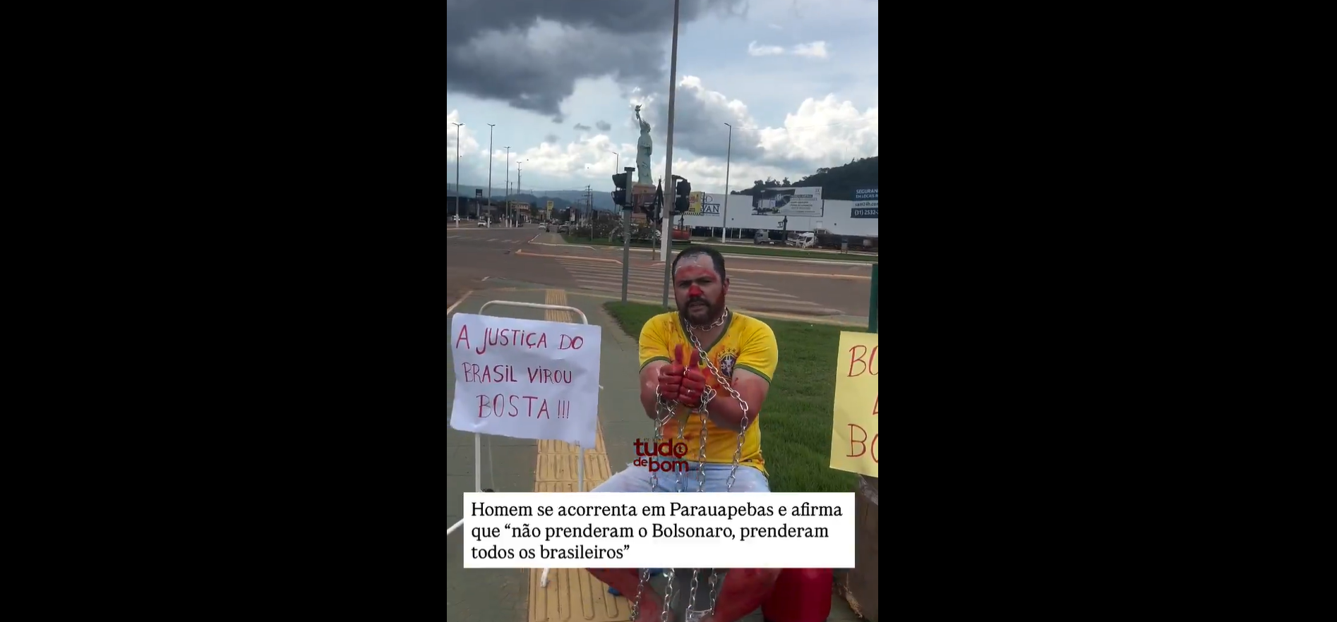 O protesto de um apoiador de Jair Bolsonaro em Parauapebas, no Pará, chamou atenção após vídeos mostrarem o homem acorrentado a um vaso sanitário às margens de uma rodovia. A ação ocorreu em reação à prisão do ex-presidente e rapidamente circulou nas redes sociais. O manifestante segurava correntes e cartazes, pedindo que motoristas buzinassem em apoio e repetindo gritos por “liberdade para Bolsonaro”.